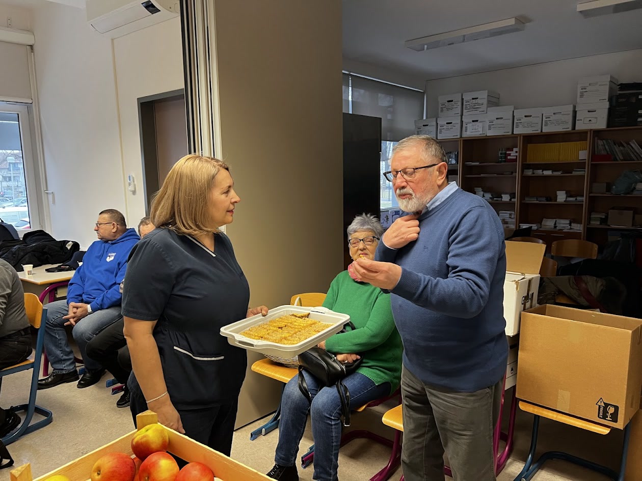 – druženje nakon mise u Velikoj dvorani Općine Strahoninec