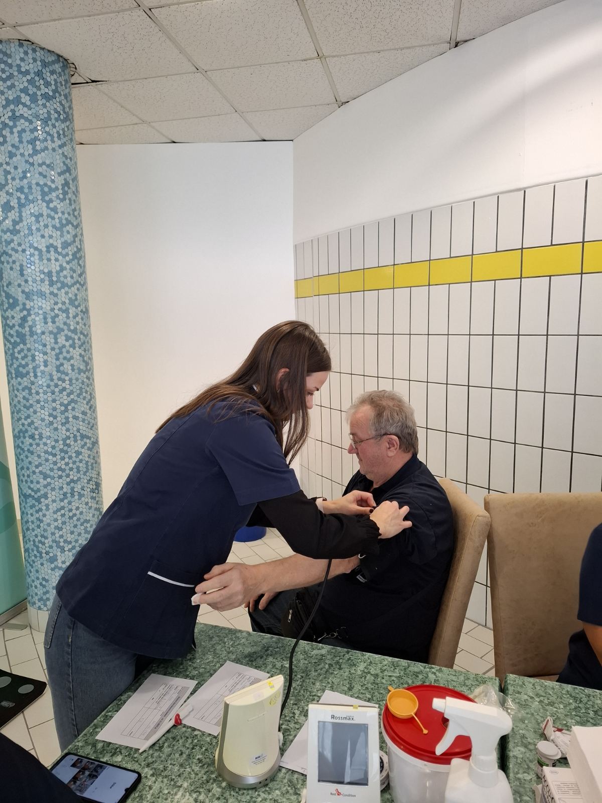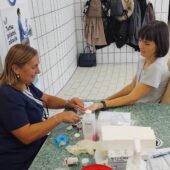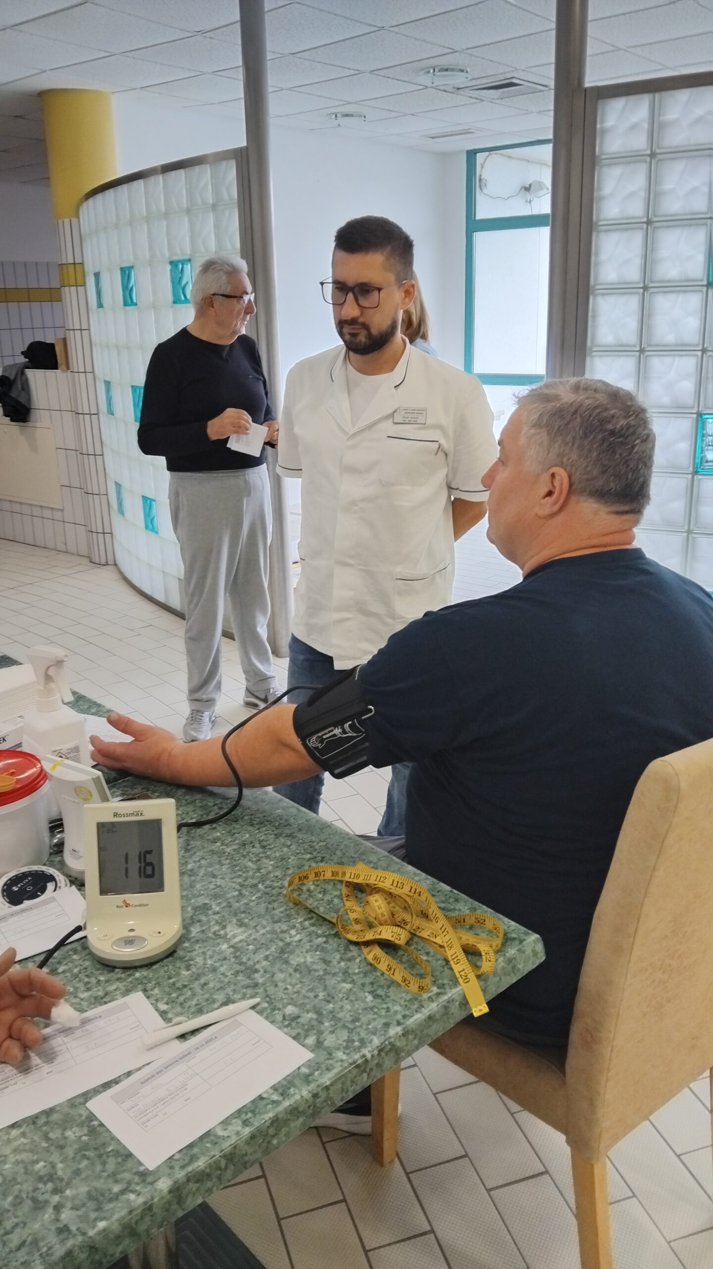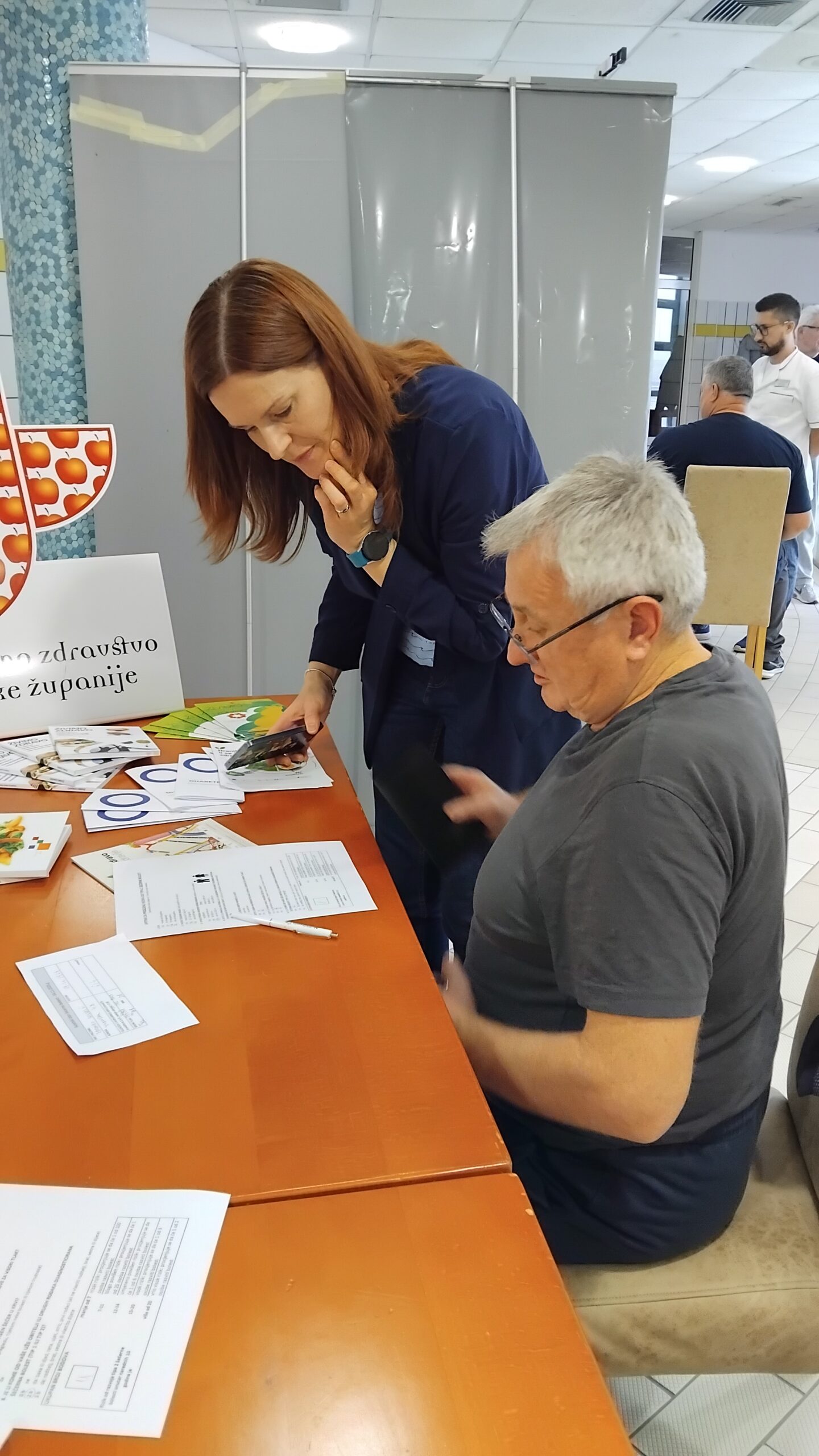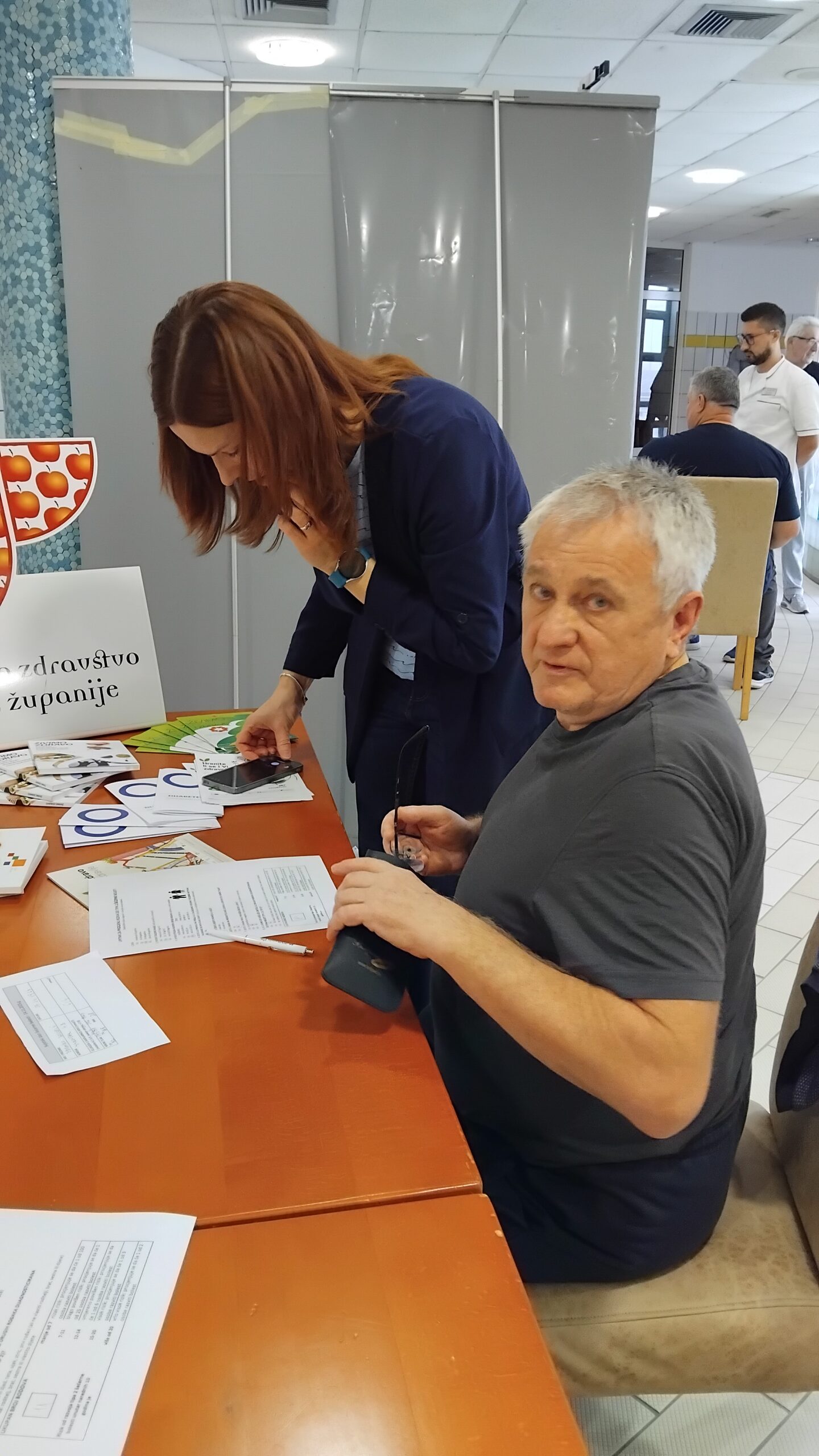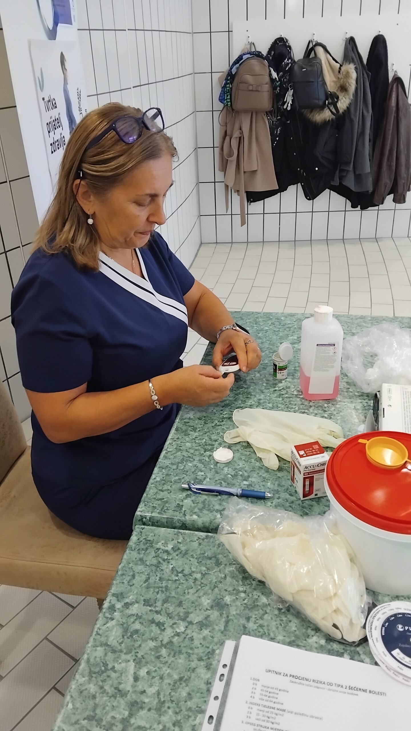 Nakon razgovora proveli smo radionicu određivanja šećera u kapilarnoj krvi i mjerenja krvnog tlaka. Odazvalo se 30-ak zaposlenika i korisnika bazena koji su nakon mjerenja imali mogućnost savjetovanja sa zdravstvenim radnicima o rizičnim čimbenicima (uz popunjavanje upitnika o riziku za dijabetes tipa 2), mogućnostima prevencije i kontrole dijabetesa, uz podjelu edukativnih materijala.