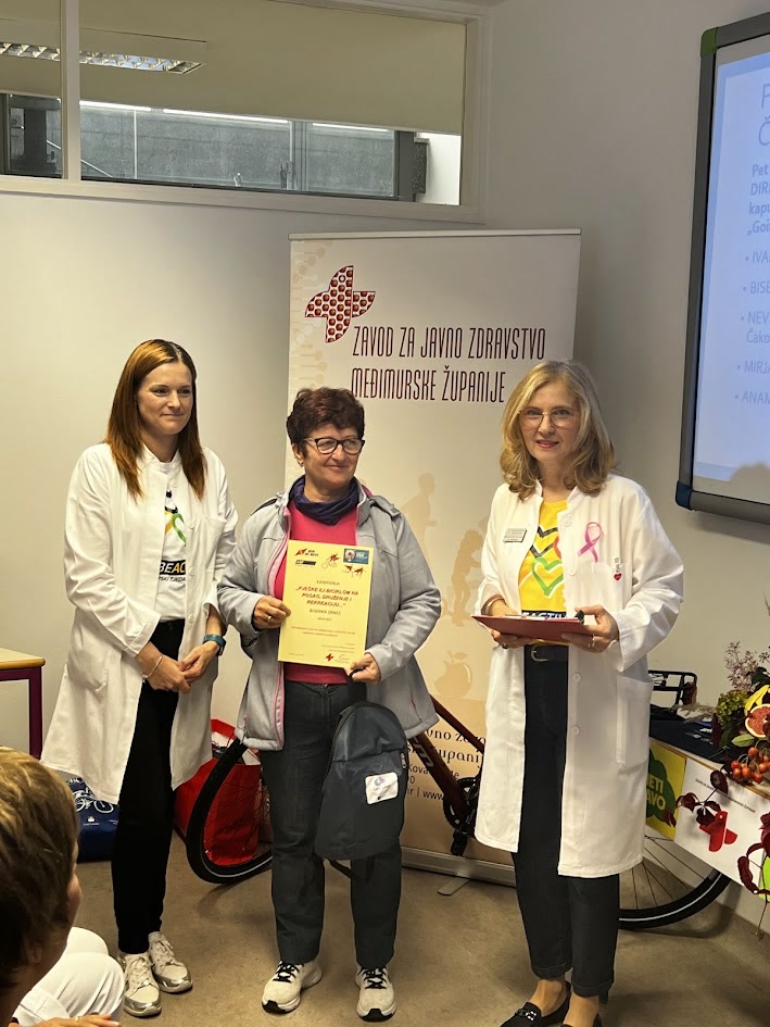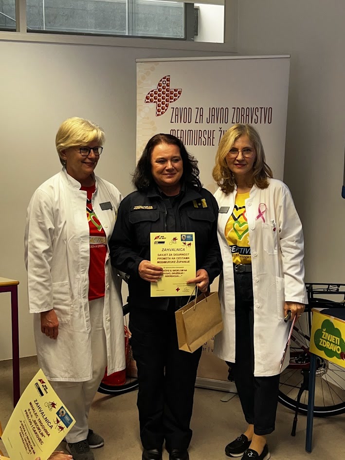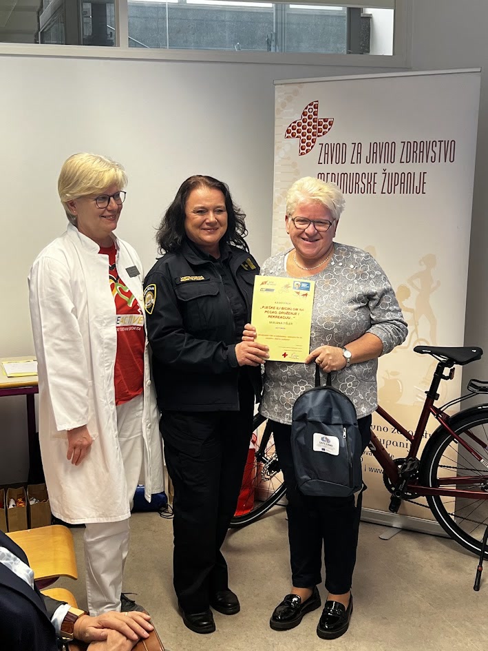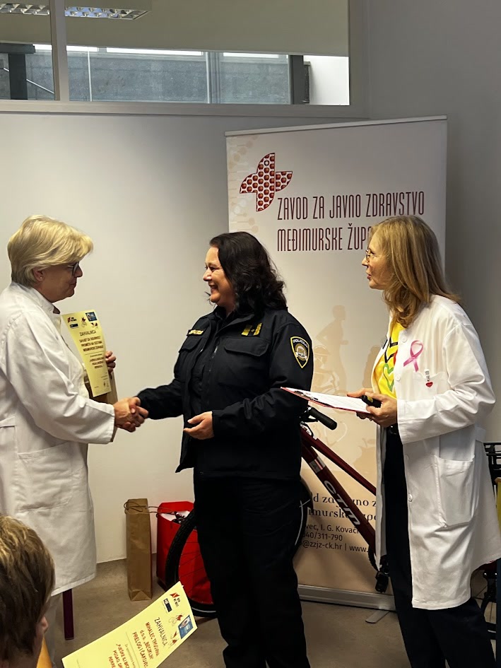 Jučer je u Zavodu za javno zdravstvo Međimurske održana dodjela nagrada sretnim dobitnicima – sudionicima kampanje dok su zahvale podijeljene dugogodišnjim sponzorima i podupirateljima kampanje. Na početku svečanosti, riječi dobrodošlice, čestitke i zahvalu svima uputile su ravnateljica Zavoda prim. Marina Payerl-Pal te pročelnica Upravnog odjela za zdravstvo i socijalnu zaštitu Međimurske županije dr.sc.Sonja Tošić-Grlač. Svima se obratila i Alenka Hošnjak, predsjednica Savjeta za sigurnost prometa na cestama Međimurske županije, koja je naglasila da se upravo toga dana u Hrvatskoj obilježava Nacionalni dan sigurnosti cestovnog prometa, koji je ove godine posvećen sigurnosti upravljanja biciklima i romobilima. Program dodjele je vodila dr. Renata Kutnjak-Kiš, voditeljica Djelatnosti za javno zdravstvo i promicanje zdravlja, koordinatorica kampanje koja je prikazala i rezultate.
