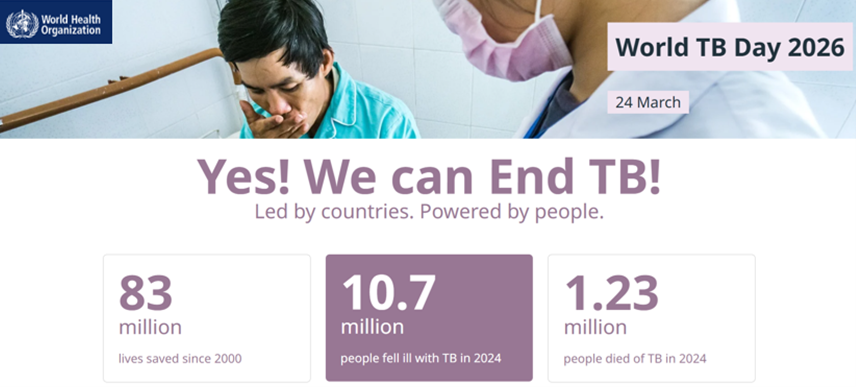 Svjetski dan tuberkuloze obilježava se 24. ožujka kako bi se podigla svijest o tuberkulozi, jednoj od najstarijih i još uvijek prisutnih zaraznih bolesti. Robert Koch je na taj dan prezentirao svoje otkriće – Mycobacterium tuberculosis kao uzročnika tuberkuloze. Tuberkuloza najčešće zahvaća pluća, ali može zahvatiti i druge organe. Prenosi se kapljičnim putem, a simptomi uključuju dugotrajan kašalj, povišenu temperaturu, noćno znojenje i gubitak tjelesne mase. Unatoč dostupnom liječenju, tuberkuloza i dalje predstavlja globalni javnozdravstveni problem. Rana i brža dijagnostika, liječenje svih osoba s tuberkulozom, učinkovita vakcinacija, djelotvorni i kraći terapijski režimi, i drugo ključne su komponente u borbi protiv tuberkuloze.