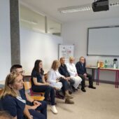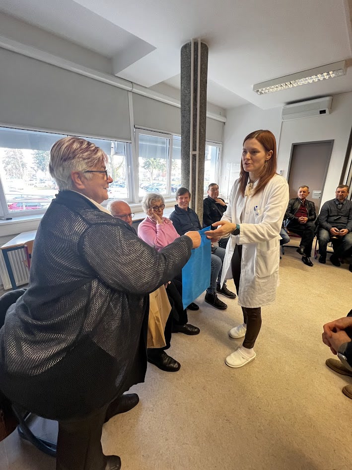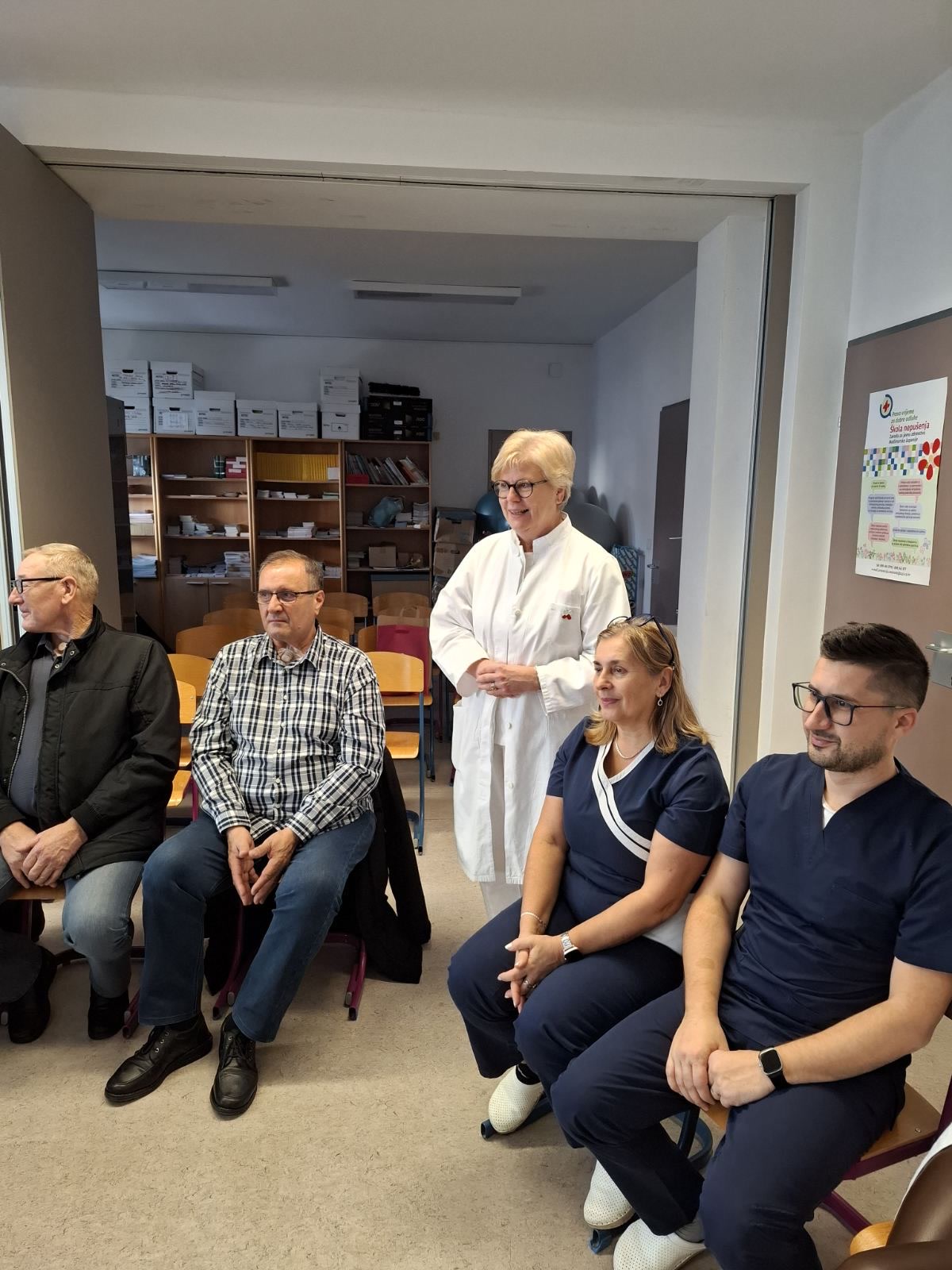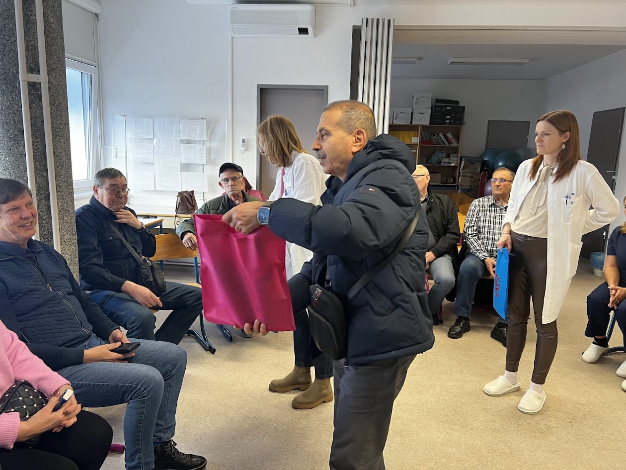 U posjet su nam došli predsjednik Kluba laringektomiranih Pule Julijan Peruško, tajnica Kluba Božica Peruško, stručni suradnik Kluba i dugogodišnji voditelj ORL odjela Bolnice Pula Boris Grdinić, dr. med., spec., te članovi Kluba Milka Penazić i Eugen Šegon.